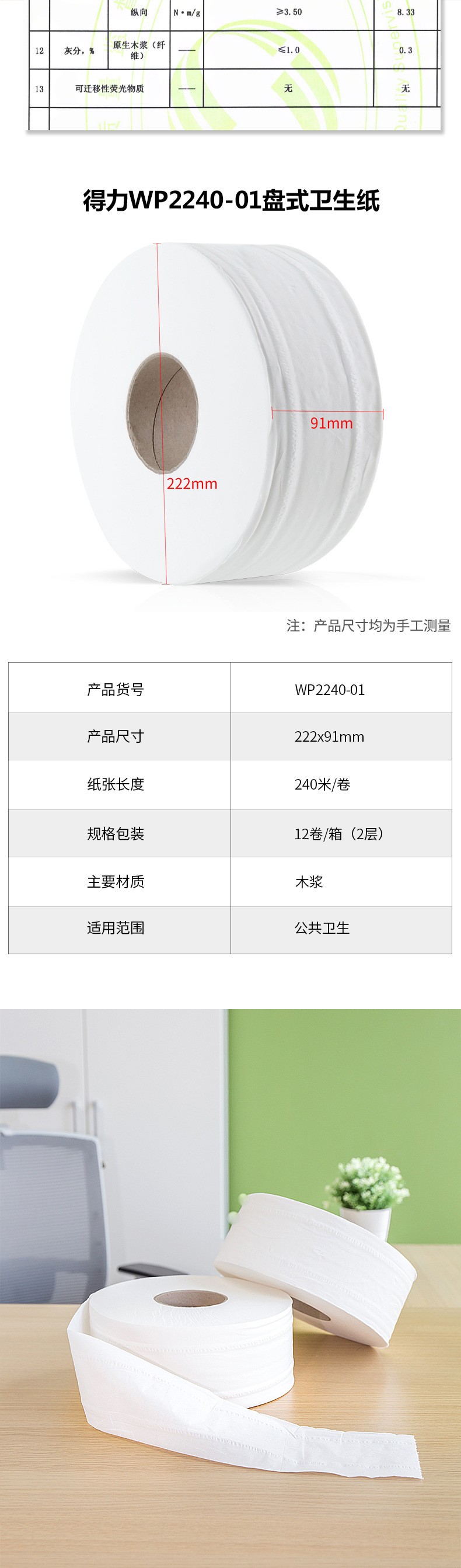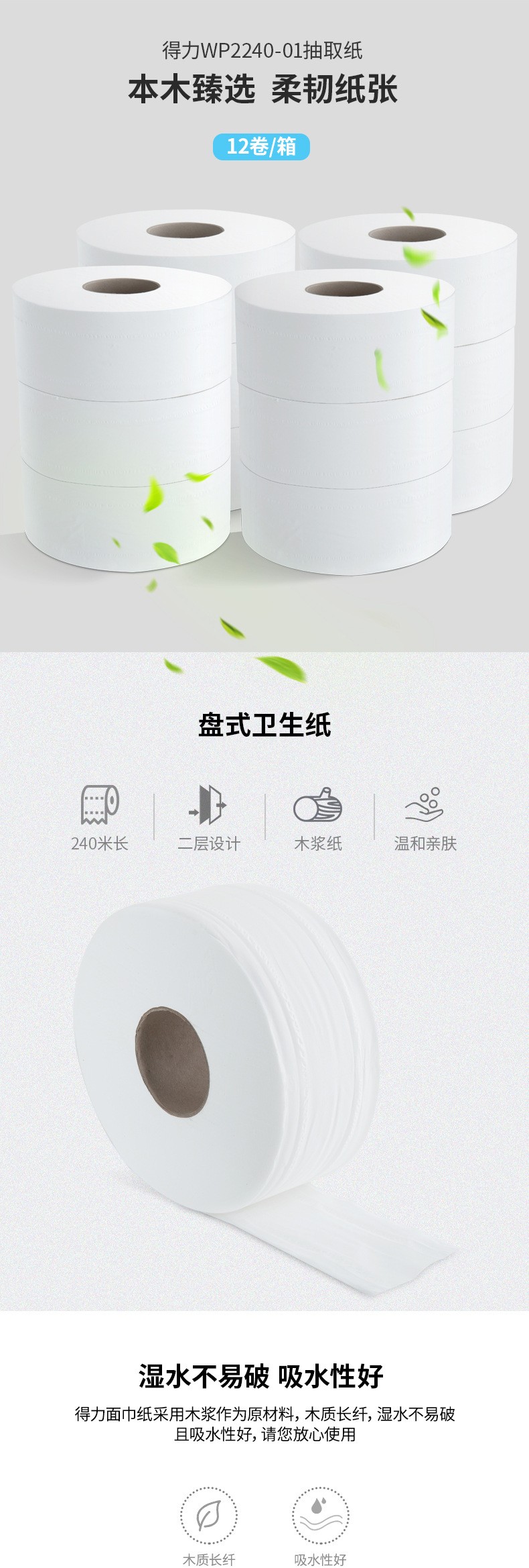 得力WP2240-01盘式卫生纸(白)(12卷/箱)