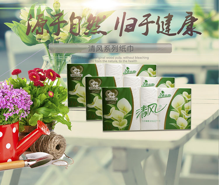 清风卷纸马蹄莲无芯卷筒纸一提10卷家用实惠装卫生纸家庭装厕纸巾