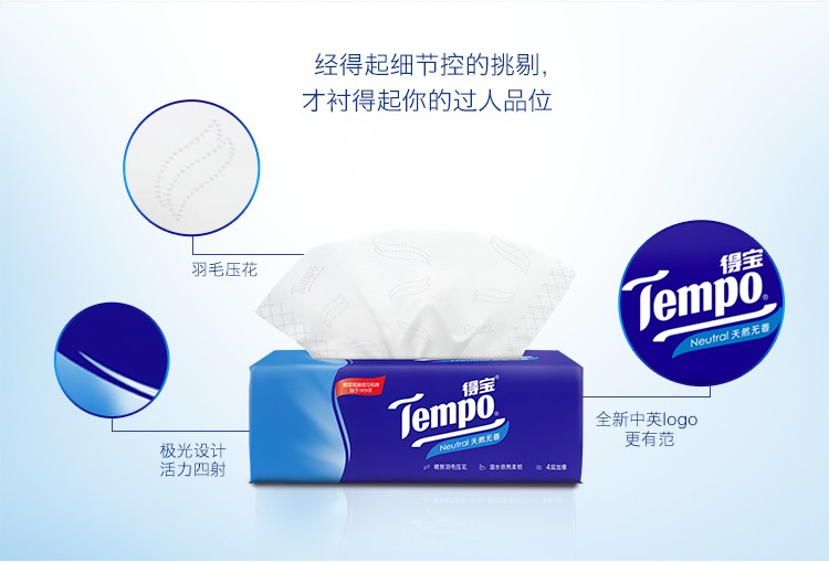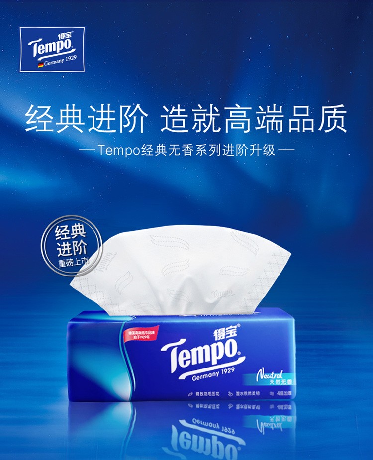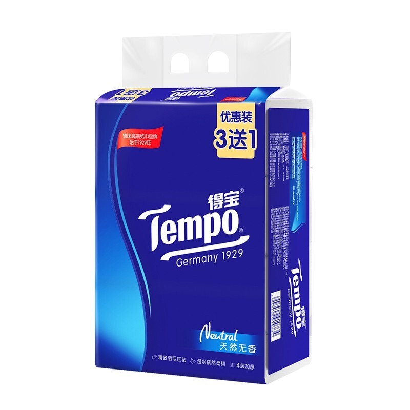 • 得宝 抽纸 4层90抽*(3+1)包 得宝(Tempo)T2275抽纸天然无香4层90抽 1提3包 16提/箱