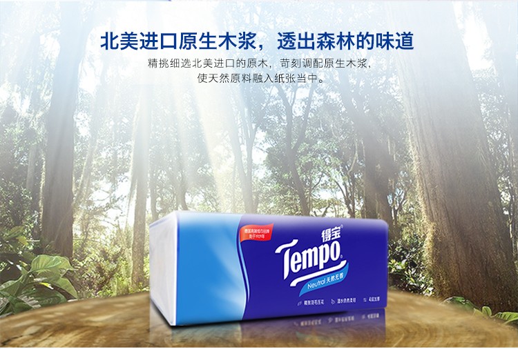 得宝 抽纸 4层90抽*(3+1)包 得宝(Tempo)T2275抽纸天然无香4层90抽 1提3包 16提/箱