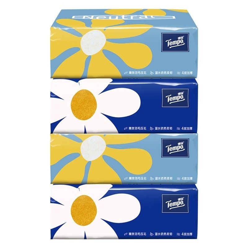 • 得宝 抽纸 4层90抽*(3+1)包 得宝(Tempo)T2275抽纸天然无香4层90抽 1提3包 16提/箱
