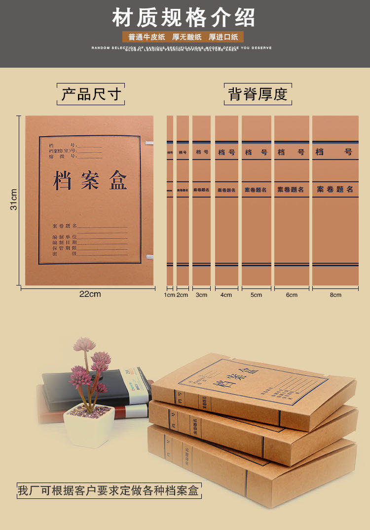 • 加厚无酸牛皮纸档案盒 背宽8CM牛皮纸档案盒 8CM 40只/捆
